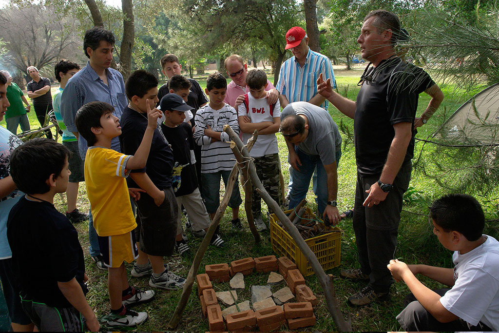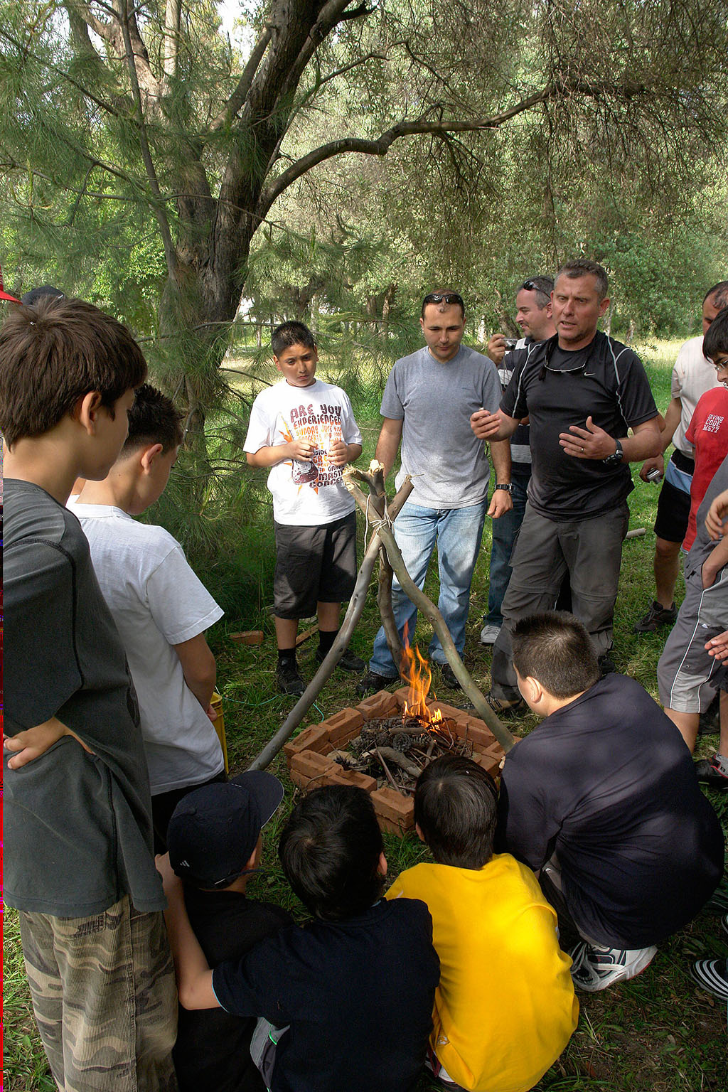 such as , starting the fire, building a shelter, grinding the cutting tools,